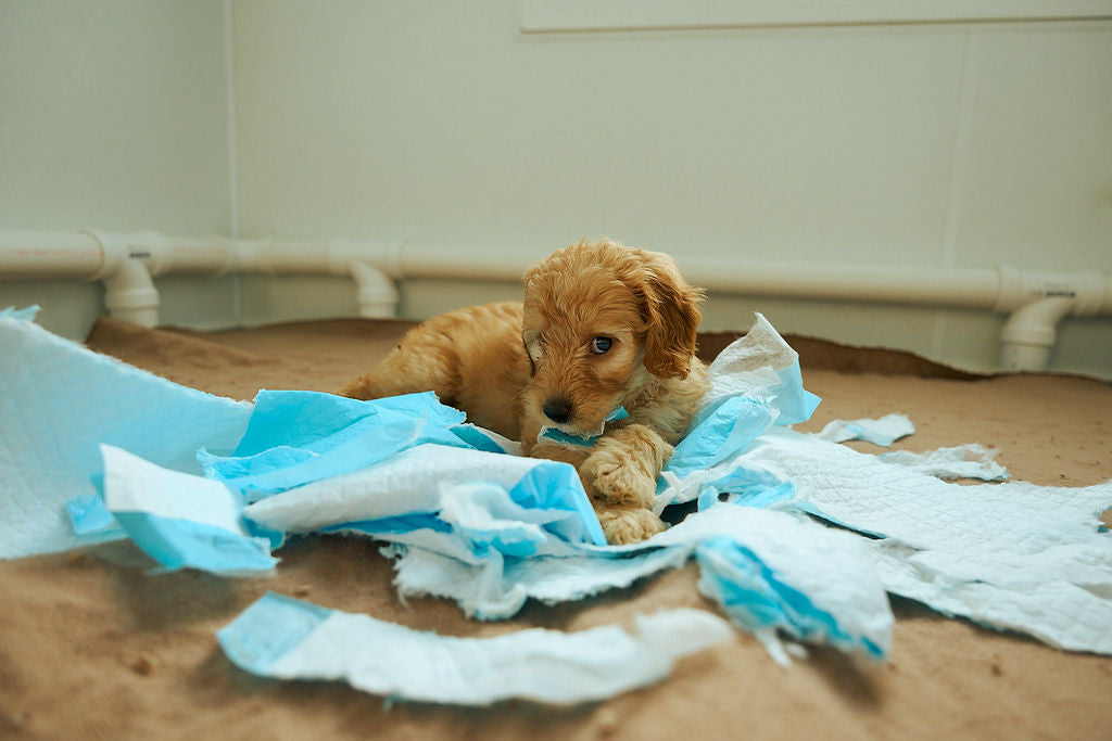 For the last 6 years, our pups have been using a shelving unit over top of a generic plastic tray. Every time we worked to clean and scrub the smeared puppy waste, we wished there was a better solution that was specifically designed for what we needed.
